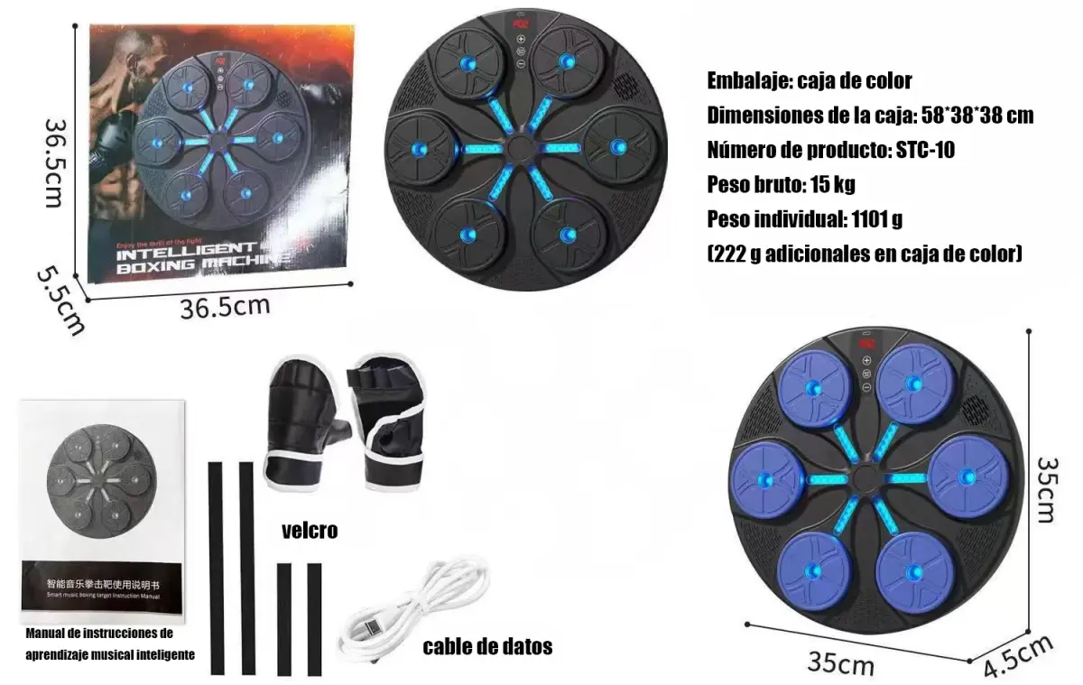 - Máquina de Boxeo Musical: Con 5 parlantes incorporados, esta máquina se conecta a tu teléfono celular para reproducir tu música favorita mientras entrenas. Esta combinación de ejercicio y música te ayudará a mantenerte motivado siempre comprometido durante todo el entrenamiento.